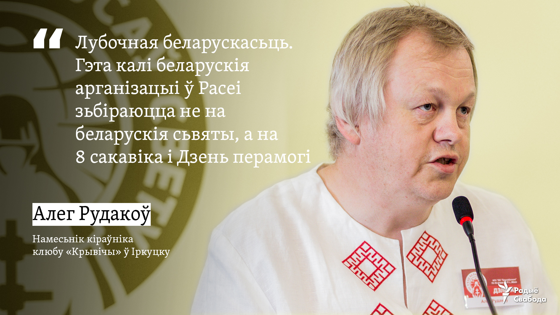«Беларускія грамадзкія аб’яднаньні ў Расеі часта існуюць як зямляцтвы. Беларускія сьвяты не адзначаюць. Сустрэчы праводзяць 8 сакавіка, каб павіншаваць жанчын, альбо на Дзень перамогі, каб павіншаваць вэтэранаў. Пры гэтым накрываюць стол і дастаюць аднекуль беларускую гарэлку, робяць дранікі на закуску. Вось неяк сьвяты і правялі».