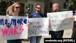 Пікет каля рэзыдэнцыі пасла Расеі праходзіць пад споклічам: “Расея, рукі прэч ад Беларусі!”
