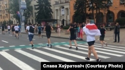 «Кожныя 2-3 хвіліны мне крычалі «Жыве Беларусь!» — бягун са сьцягам на Менскім паўмаратоне