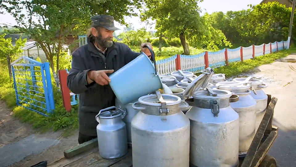 Штораніцы Мікалай Белавус аб’яжджае ўсходнюю частку Друю і зьбірае малако. Як і шмат гадоў таму, малочнік едзе возам. У ягоным сьпісе - 24 чалавекі. За раз ён набірае няпоўны воз. Раней бітонаў было ў некалькі разоў болей і даводзілася рабіць два заходы.