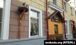 Спачатку ўсіх заінтрыгавала архітэктурная недарэчнасьць — калі ў клясычную «сталінку» нехта вырашыў «убудаваць» імітацыю вясковай хаты. А неўзабаве «ампірны церамок» уразіў чарговай бязглузьдзіцай: на паддашку зьявіўся надпіс на няпэўнай мове — «Батькова хата». Лінгвістычны кентаўр, ужо аднойчы раскрытыкаваны ў якасьці брэнду «крышталёўскай» алькагольнай прадукцыі.
