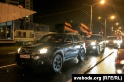 Аўтакалёна прарасейскіх актывістаў са сьцягамі праехала праз цэнтар Менску. ВІДЭА