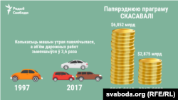 Як адзначае Саўмін, з 1997 году ў Беларусі амаль утрая павялічыўся «ўзровень аўтамабілізацыі насельніцтва, але працягласьць дарог агульнага карыстаньня павялічылася толькі ў 1,6 раза (практычна перастала расьці з пачатку 2000-х), а аб’ём фінансаваньня (без улікаў крэдытаў) — у 1,5 раза. Аб’ём дарожных работ зьменшыўся за 20 гадоў у 3,6 раза.