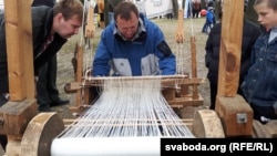 На «ільняным падворку» у парку райцэнтру расказвалі пра традыцыі беларусаў, дэманстравалі вырабы і строі зь лёну і нават супольна ткалі на кроснах сьвяточны ручнік.