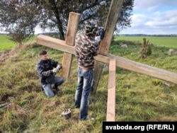 Актывісты зь Лідзкага раёну рэстаўруюць крыжы на месцы пахаваньня паўстанцаў 1863 году паміж вёскамі Малое Вольжава і Мохавічы