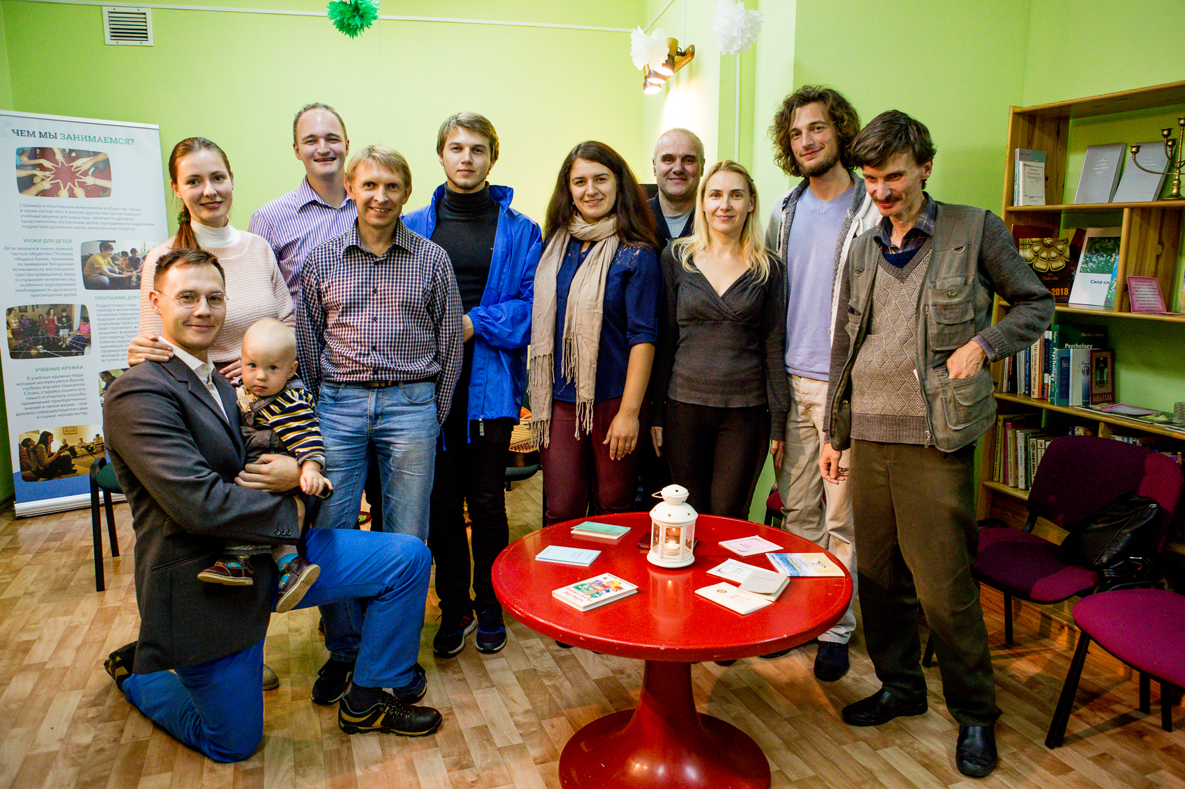 Па цэнтру залі стаіць стол. Галяндзец Даніэль раскладвае кніжкі па коле. Мужчына шэсьць гадоў жыве ў Беларусі, ажаніўся тут. Зараз ён выконвае абавязкі старшыні Мясцовага сходу менскай суполкі, пакуль сталы старшыня не абраны. У бахаі няма прафэсыйных сьвятароў, таму ён ня мае ўлады над іншымі.