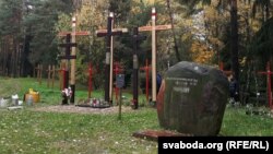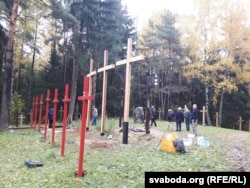Калі карэспандэнт Свабоды быў у Курапатах, былі ўсталяваныя тры крыжы. Па словах валянтэраў, чацьвёрты крыж з надпісам «Беларускаму сялянству» таксама будзе ўсталяваны сёньня.