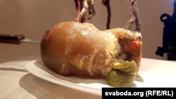 700-грамовы Ленін-халадзец звараны са сьвініны. Дабаўкі традыцыйныя — морква, гарошак, перац. Зь нетрадыцыйных — невядомыя матэрыялы формы, у якую залівалі халадзец. Настасьcя лічыць такое спалучэньне сымбалічным.