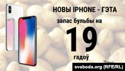 З улікам цяперашніх цэнаў, замест iPhone X можна набыць 3 тонны 297 кіляграмаў бульбы. Паводле Белстату, за год беларус зьядае 171 кіляграм гэтай гародніны. Адмовіўшыся ад «яблычнага» смартфону, можна забясьпечыць сябе бульбай на больш чым 19 гадоў.