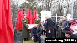 Капсулу на вайсковай машыне ў суправаджэньні браневіка даставілі на іншы мітынг, які зладзілі на плошчы Леніна.