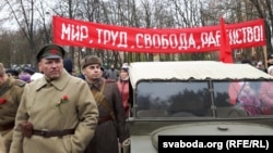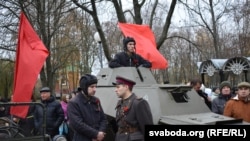 7 лістапада ў Гомлі афіцыйна адзначалі стагодзьдзе бальшавіцкага перавароту. У тэатралізаванай рэканструкцыі мясцовыя ўлады імкнуліся аднавіць падзеі стогадовай даўніны.