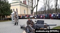 З нагоды юбілею чальцоў вайскова-гістарычнага клюбу пераапранулі, далі амуніцыю матросаў, салдатаў, казакоў, узброілі музэйнымі вінтоўкамі ды кулямётамі «Максім» — і яны штурмам узялі палац Румянцавых-Паскевічаў.