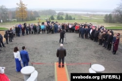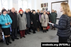 Некалькі дзясяткаў чалавек прысутнічалі на адкрыцьці музэю ў Косаўскім палацы. Стужку перарэзалі прадстаўнікі ўладаў ды навуковага кіраўніцтва рэстаўрацыі.