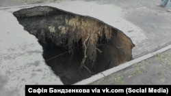 У Пінску кавалак асфальту сышоў пад зямлю. ФОТАФАКТ