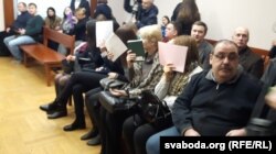 Трое з падсудных сядзяць у залі ў жалезнай клетцы. Гэта былыя адказныя мытнікі Аляксандар Красаўцаў, Уладзіслаў Гамолка і Вадзім Лоха. Іх арыштавалі ў 2016 годзе і з таго часу трымаюць пад вартай. Астатнія 14 прыйшлі ў суд самі, зь іх хто пад хатнім арыштам, хто пад падпіскай.