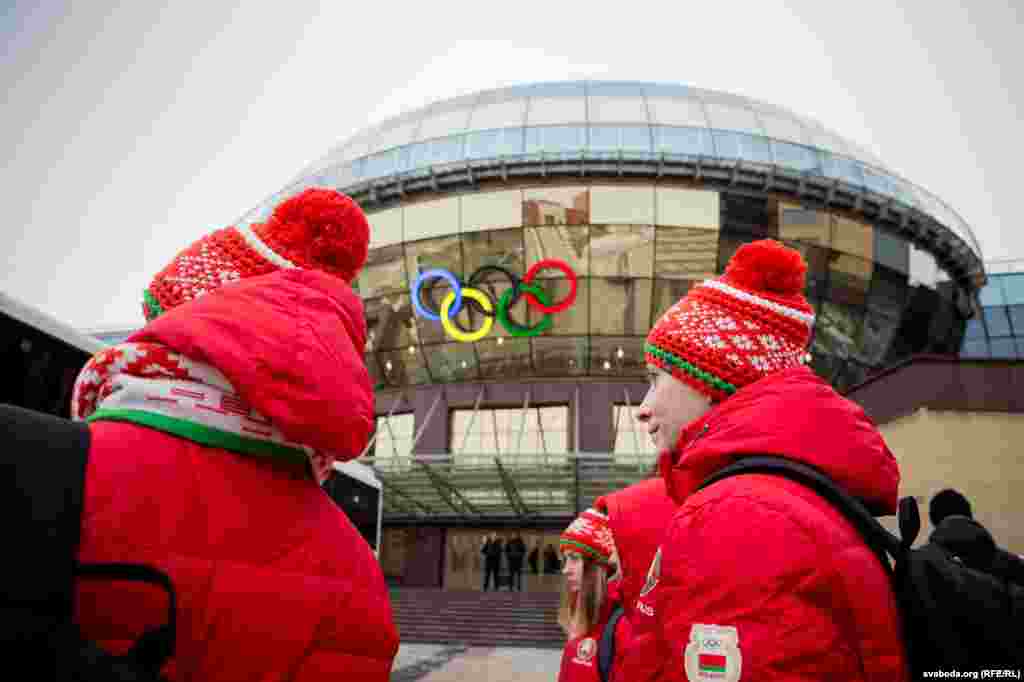 1 лютага ад штаб-кватэры Нацыянальнага алімпійскага камітэту ў Менску праводзілі спартоўцаў і трэнэраў, якія возьмуць удзел у XXIII зімовай Алімпіядзе. Яшчэ адна група ад’ехала ў аэрапорт з Раўбічаў, дзе месьціцца Цэнтар падрыхтоўкі па зімовых дысцыплінах.