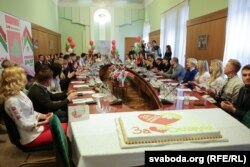 Галоўнай госьці, Лідзіі Ярмошынай, таксама далі выказацца, а ў канцы сьвята ўручылі торбу, поўную падарункаў.