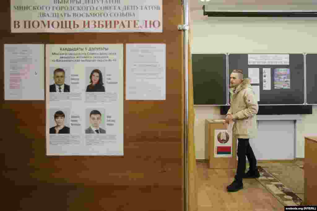 Фотарэпартаж з 39-га ўчастка Багдановіцкай 45-й выбарчай акругі, што месьціцца ў 8-м корпусе Беларускага нацыянальнага тэхнічнага ўнівэсытэту ў Менску.