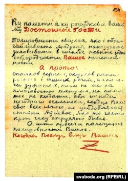 Гэты тэкст, напісаным рукою Ластоўскага, быў адрасаваны наведнікам ягонага працоўнага кабінэту:
