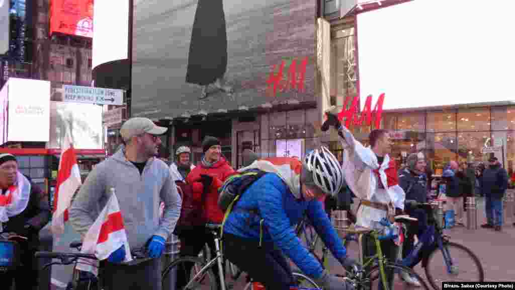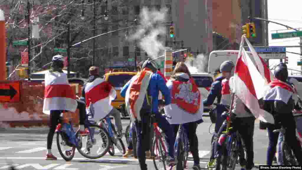 Бел-чырвона-белы парад на роварах па Мангэтане