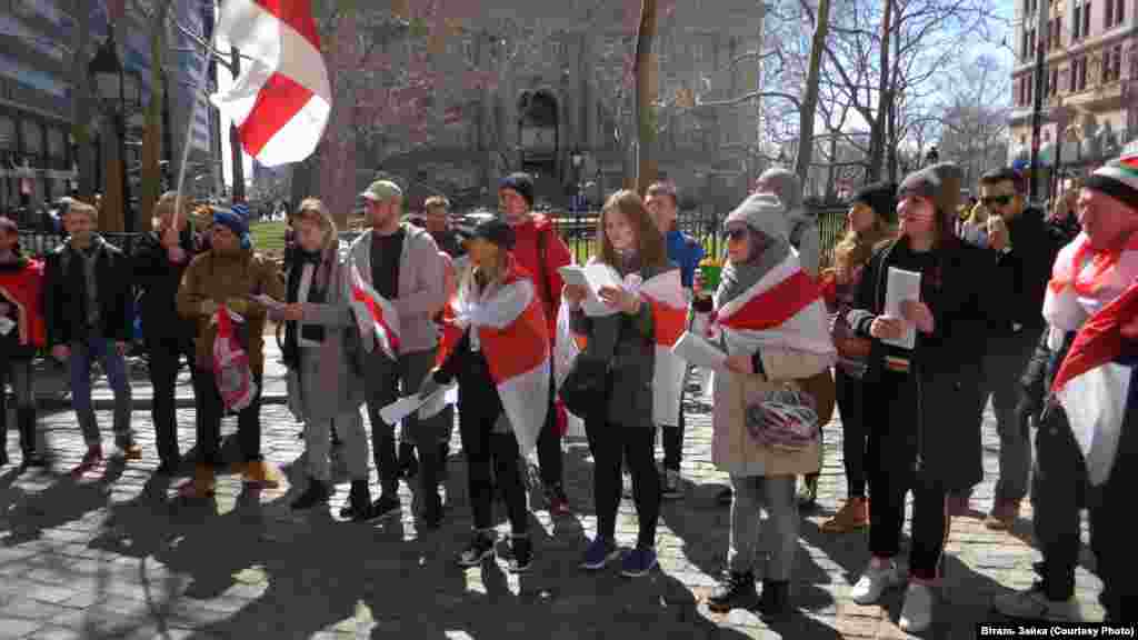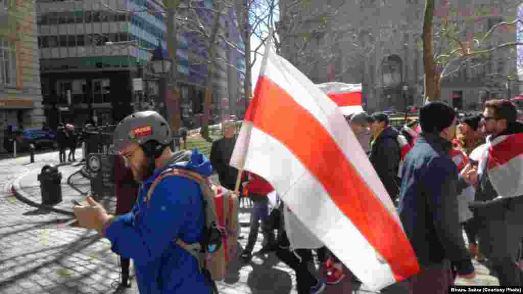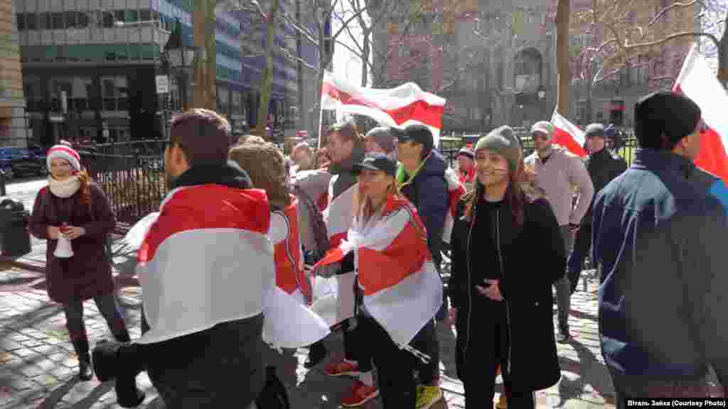 Беларусы Нью-Ёрку правялі 11 сакавіка роварны парад зь бел-чырвона-белымі сьцягамі па Мангэтане. Акцыя была прысьвечаная 100 годзьдзю абвяшчэньня незалежнасьці Беларускай Народнай Рэспублікі. Фотаздымкі Віталя Зайкі.
