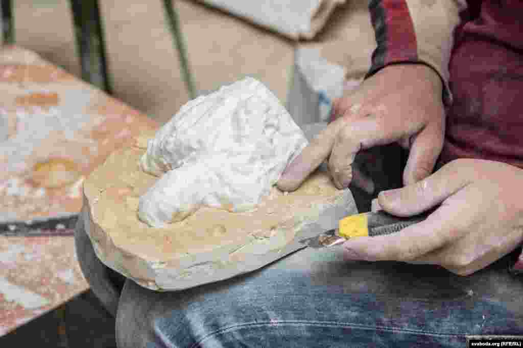 «Так, са спадаром Алесем ужо разоў пяць стэлефаноўваліся, ён дае карысныя парады, — распавядаў Свабодзе Ігар Засімовіч. — Прынцыповы момант, што гэтым разам вершнік будзе маналітны, а не з розных частак. У 1993 годзе, калі ўсё рабілася практычна задарма, проста не было магчымасьці зрабіць гэта суцэльна. Каб не было спакусы нешта адарваць, паламаць. Дзеля таго робіцца васковая мадэль, па ёй фармуецца так званая тэхналёгія ХТС, калі формы зацьвердзяваюць, воск выбіраецца і заліваецца бронза. Дзень-два на апрацоўку, патынаваньне — і ўсё будзе гатова».