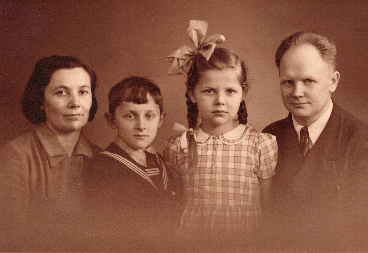 Першае дасьведчаньне савецкай акупацыі між 1939 і 1941 годам было для іх страшным і незразумелым. Бацьку — ëн тады працаваў галоўным інжынэрам на электрастанцыі ў Баранавічах — арыштавалі і засудзілі на пяць гадоў ссылкі ў Сыбір. Памятаю, як прыйшлі яго арыштоўваць, то хацелі ў мяне з шыі сарваць мой залаты крыжык, і я крычала, каб яго ня даць. Мне было толькі тры гады, але памятаю маміны сьлëзы.