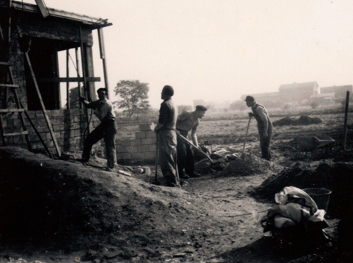 Дзесь ўлетку 1952 году мы знайшлі лапік зямлі ў мястэчку Сартрувіль, якое знаходзіцца за 12 кілямэтраў на паўночны захад ад мяжы Парыжу. Паколькі грошай не было, тата вырашыў будаваць этапамі двухпавярховы дом, бо ўчастак быў пасьля падзелу даволі вузкі. Спачатку адзін пакой, куды можна было б адразу перабрацца, а за грошы, заашчаджаныя на кватэры, кожныя два тыдні купляць будаўнічы матэрыял — цэмэнт, пясок, цэглу, жалеза, а пазьней вокны, дзьверы, падлогу і г. д., і памаленьку — з жонкай і дзецьмі — будаваць...