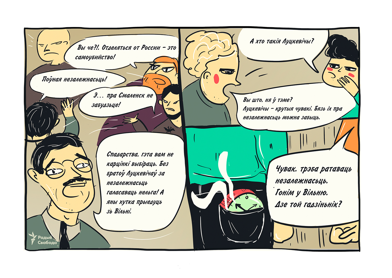 Беларускай Народнай Рэспублікі не было б, калі б не Антось ды Янка — два студэнты зь менскага мікрараёну Малінаўка. Праз партал у «Чабурэчнай» яны перанесьліся ў Менск 100-гадовай даўнасьці і перамаглі «русский мир». Як гэта магло б выглядаць, глядзіце ў коміксах Свабоды.