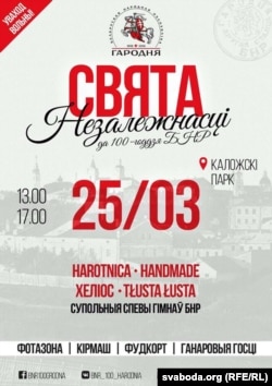 Гарадзенскія ўлады дазволілі сьвяточныя імпрэзы да 100-годзьдзя БНР. Заключаныя ўсе неабходныя дамовы: зь міліцыяй, «хуткай дапамогай», службай прыбіраньня тэрыторыі. Вырашаныя пытаньні з падключэньнем электраэнэргіі, апаратурай і сцэнай. Будзе выязны гандаль фастфудам і гарачымі напоямі.