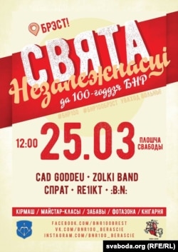 Берасьцейскі гарвыканкам ухваліў заяўку на правядзеньне сьвяточнага фэсту 25 сакавіка. Імпрэза пачнецца а 13-й гадзіне на плошчы Свабоды. Напачатку адбудзецца мітынг, на якім выступяць палітычныя і грамадзкія актывісты, прадстаўнікі берасьцейскіх уладаў. Бел-чырвона-белы сьцяг і герб «Пагоня» прыносіць на Дзень Волі дазволілі разам зь іншай сымболікай, «тэматычна зьвязанай з падзеяй». Музычную частку складуць духавы аркестар Берасьця, гурты :B:N:, Re1ikt, Zolki Band.