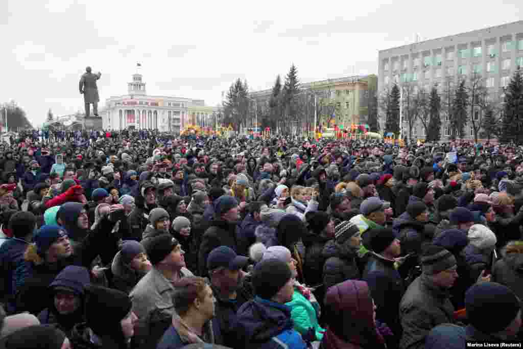 Людзі на мітынгу ў Кемераве патрабуюць ад уладаў праўды. ФОТА