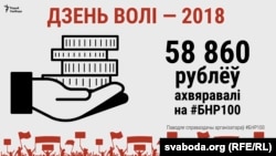 Падчас краўдфандынгу на Дзень Волі сабралі 58 860 рублёў. На сьвяткаваньне стагодзьдзя БНР праз краўд-пляцоўку talaka.org ахвяравалі 1025 чалавек — агулам гэта 36 860 рублёў.