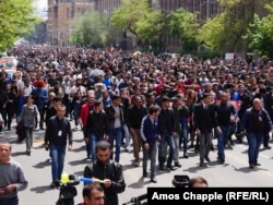 Акцыі пратэсту ў Армэніі працягваюцца ўжо больш за тыдзень. Галоўнай іх мэтай, як заяўляе апазыцыя, зьвяржэньне ўлады Сэржа Саргсьяна і Рэспубліканскай партыі, якая кіруе ў Армэніі на працягу многіх гадоў. Пратэстоўцы абвінавачваюць Саргсьяна ў тым, што ён ня выканаў свайго абяцаньня — не прэтэндаваць на пасаду прэм’ер-міністра пасьля заканчэньня свайго другога пяцігадовага тэрміну на пасадзе прэзыдэнта.