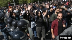 Калі шэсьце на чале з Пашыньянам дайшло да вуліцы Арцаха, на яго шляху стаў паліцэйскі кардон у шаломах і са шчытамі. Пратэстоўцы паспрабавалі прарваць паліцэйскае ачапленьне, паміж імі і паліцыяй адбыліся сутычкі. Паліцыя ўжыла шумавыя гранаты і гумовыя дручкі для стрымліваньня дэманстрантаў.