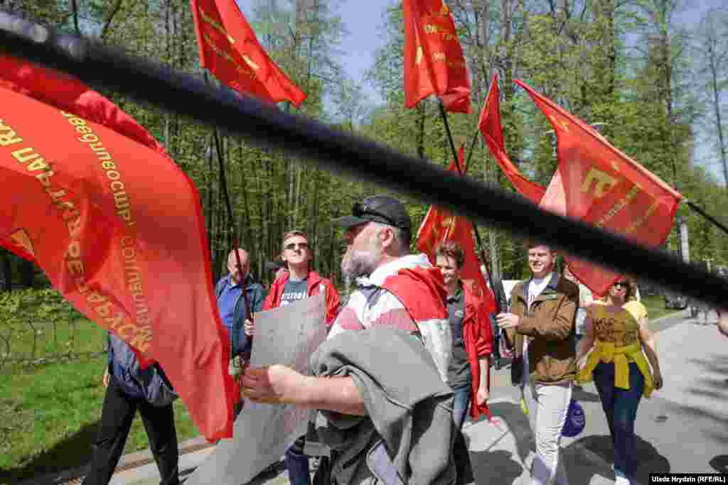 Афіцыйныя прафсаюзы правялі свой мітынг, прысьвечаны 1 мая. У Парку Перамогі сабралося некалькі тысяч чалавек на чале зь Міхаілам Ардой, Ігарам Юркевічам і іншымі чыноўнікамі. Да ўдзельнікаў мітынгу далучыліся прыхільнікі Стакевіча, якія разгарнулі свае плякаты і бел-чырвона- белы сьцяг. Неўзабаве яны былі затрыманыя супрацоўнікамі міліцыі