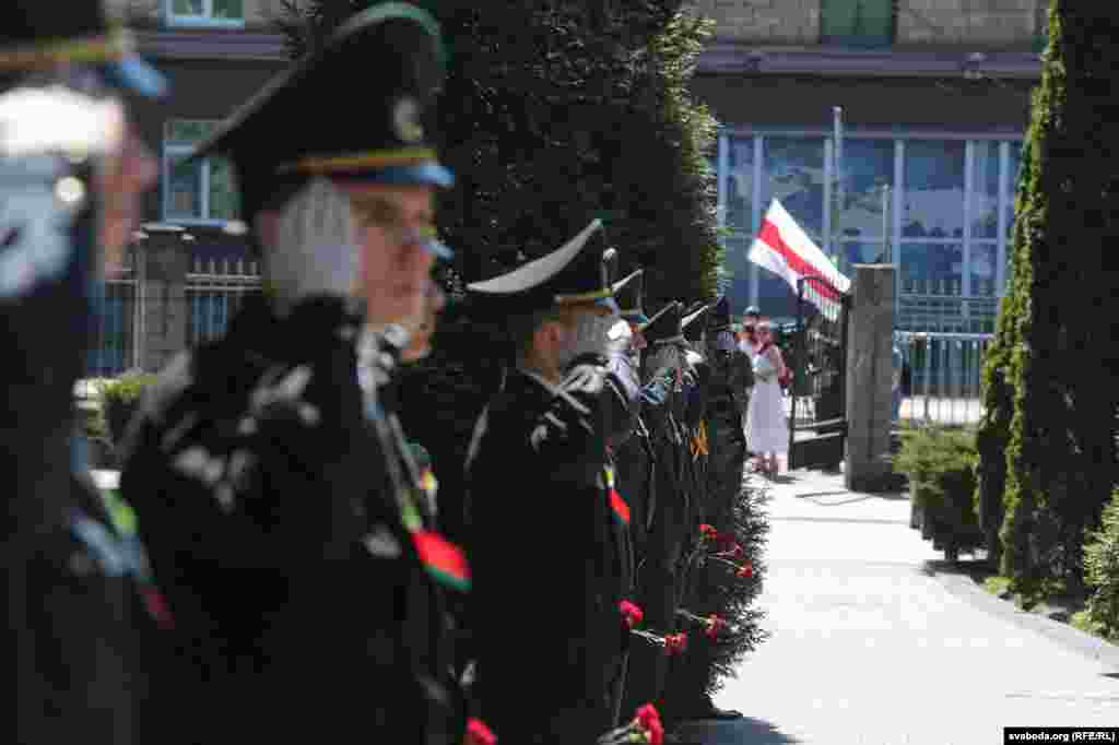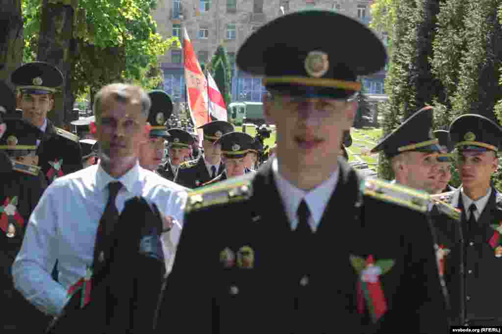Спачатку вянкі да помніка ўсклалі курсанты і піянэры, былі дадзеныя адзіночныя залпы са зброі.