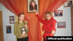 Вучні школы, дзе вучылася Сьвятлана Алексіевіч, зрабілі ёй фота-, відэа- і радыёвіншаваньні