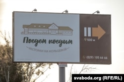 Каля МКАД усталяваны банэр з рэклямай рэстарацыі.