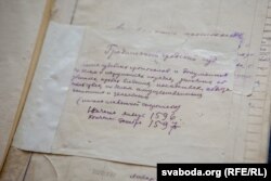 «Часта да спраў падшываліся дакумэнты ХV-ХVІ стагодзьдзяў, — кажа Свабодзе Дзяніс Лісейчыкаў. — Выяўленьне такіх дакумэнтаў мы праводзім плянава. Бяром фонд і за год прагортваем сотні спраў. Тры-чатыры такія рэчы знаходзім».