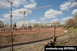 Маляўнічы куток Менску побач з паркам Чалюскінцаў заўсёды быў зялёнай зонай адпачынку. Але некалькі месяцаў таму проста пасярод чыгуначнага насыпу, у самым цэнтры кольца, па якім дзесяцігодзьдзі курсавалі цягнікі — зьявіліся вежавыя будаўнічыя краны.