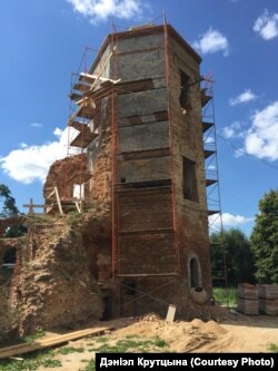 Адноўлена адна зь вежаў Гальшанскага замку. Фатафакт