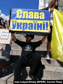Як перадае карэспандэнт Радыё Свабода, сярод пратэстоўцаў — шмат ўкраінцаў. Яны разгарнулі плякаты ў падтрымку крымчаніна Алега Сянцова, які галадае ў расейскай турме за Палярным кругам. На акцыю таксама прыходзіла сястра Алега Натальля Каплан.