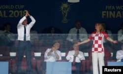 На стадыёне ў Лужніках за гульнёй сваіх камандаў назіралі прэзыдэнты Харватыі і Францыі - Калінда Грабар-Кітаравіч і Эманюэль Макрон.