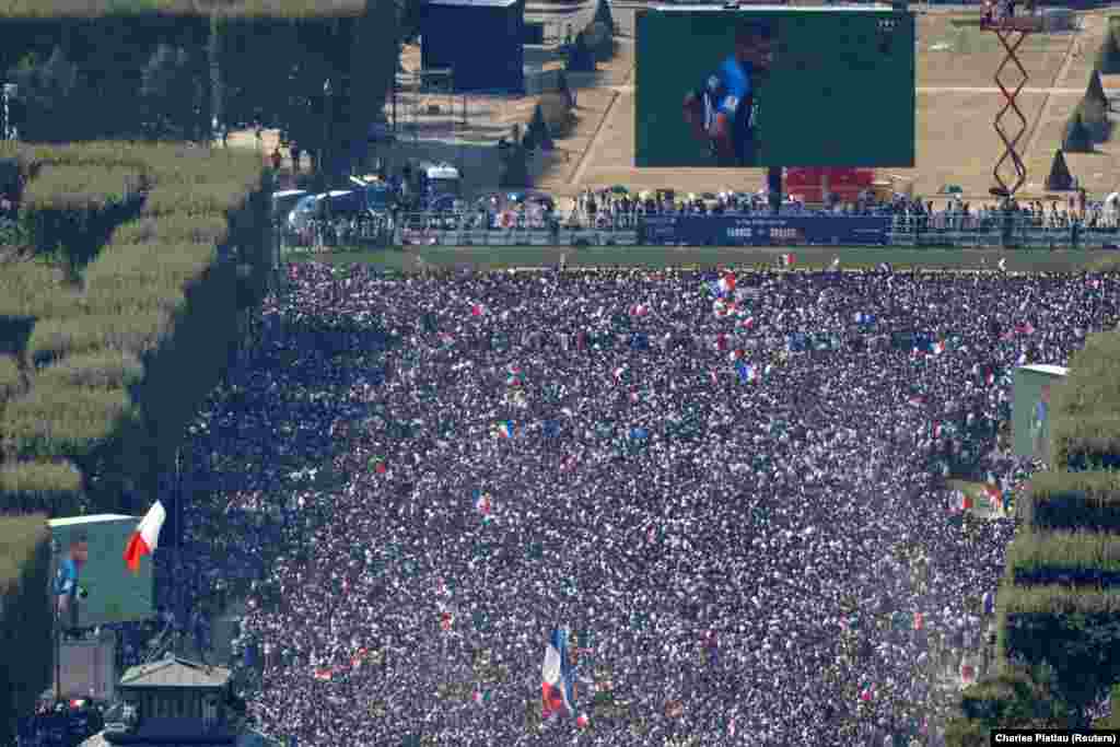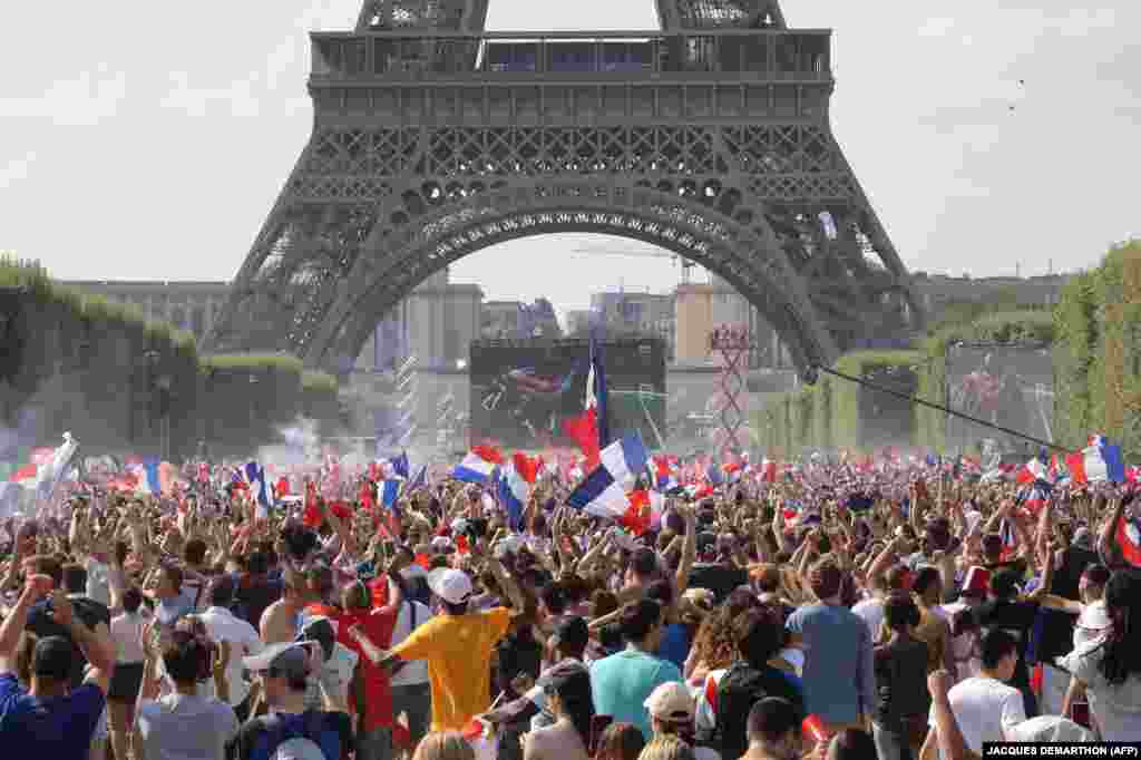 Перамогу зборнай Францыі над камандай Харватыі ў фінале чэмпіянату сьвету па футболе назіраў увесь Парыж. Эпіцэнтрам сьвяткаваньняў стала Марсава поле ля Эйфелевай вежы, дзе сабраліся сотні тысяч чалавек.