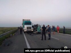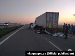 Як паведамілі Свабодзе ў Нацыянальнай паліцыі Ўкраіны, кіроўца мікрааўтобуса Mercedes-Benz ня справіўся з кіраваньнем — аўтобус сутыкнуўся з прыпаркаваным на ўзбочыне грузавым аўтамабілем.
