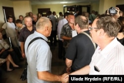 11:30. Чарга на дагляд, каб прайсьці ў залю суду, складае каля 50 чалавек — у залю на 11:30 прапусьцілі далёка ня ўсіх ахвочых прысутнічаць.