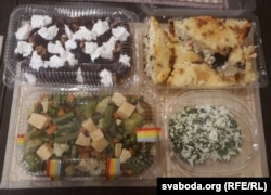 Віка Біран гатавала з таго, што было ў лядоўні. Бязь мяса, бо вэгетарыянка, але сытна. Выйшла салата з буракоў, арэхаў і казінага сыру, бульба з гароднінай і вытрыманым сырам, тварожная запяканка з разынкамі і сухафруктамі, адыгейскі сыр зь зелянінай.