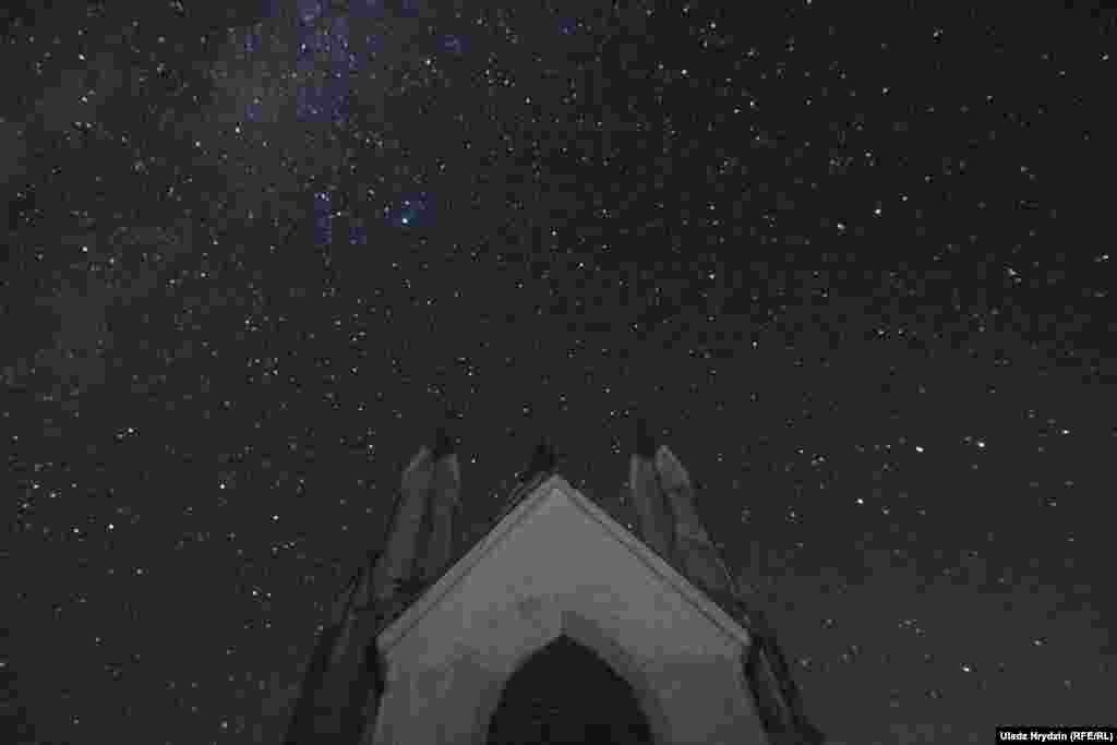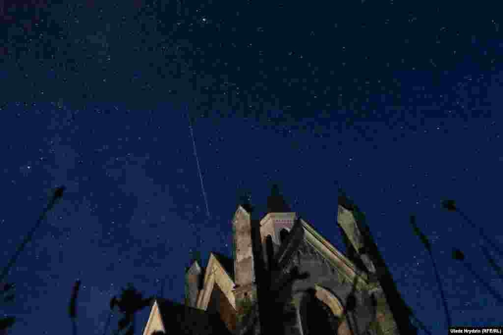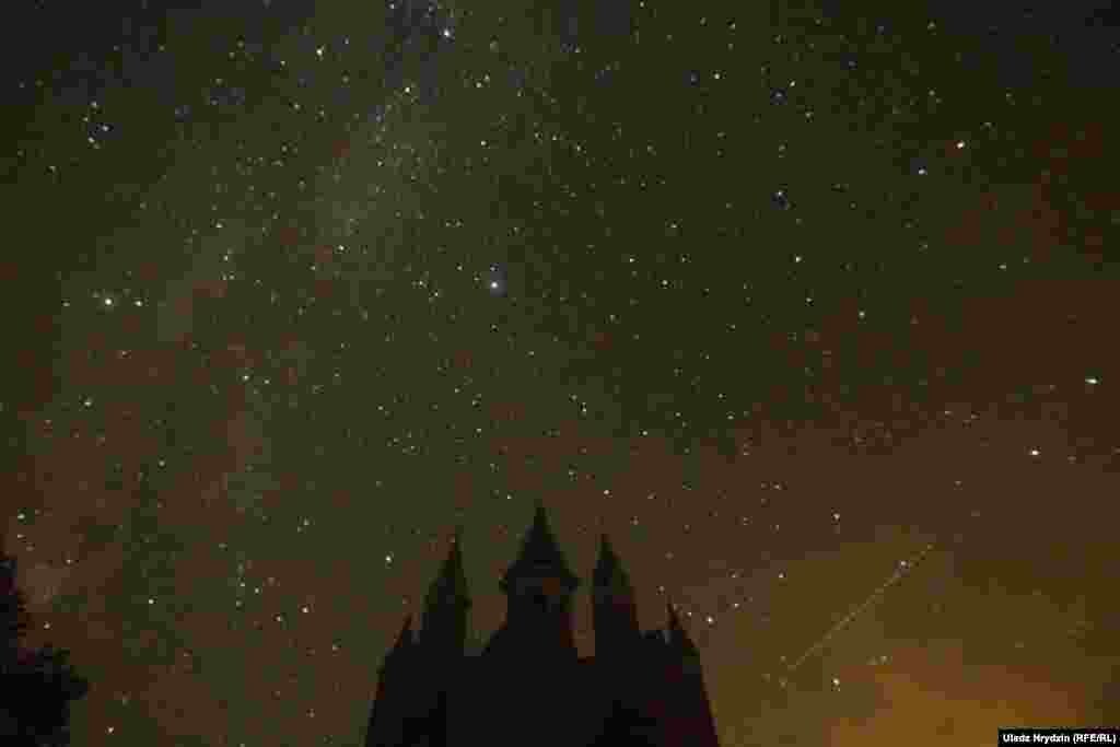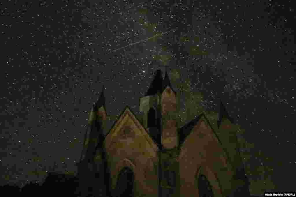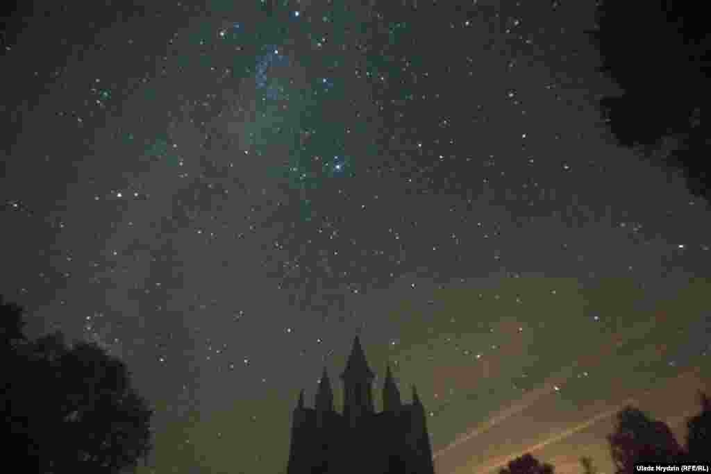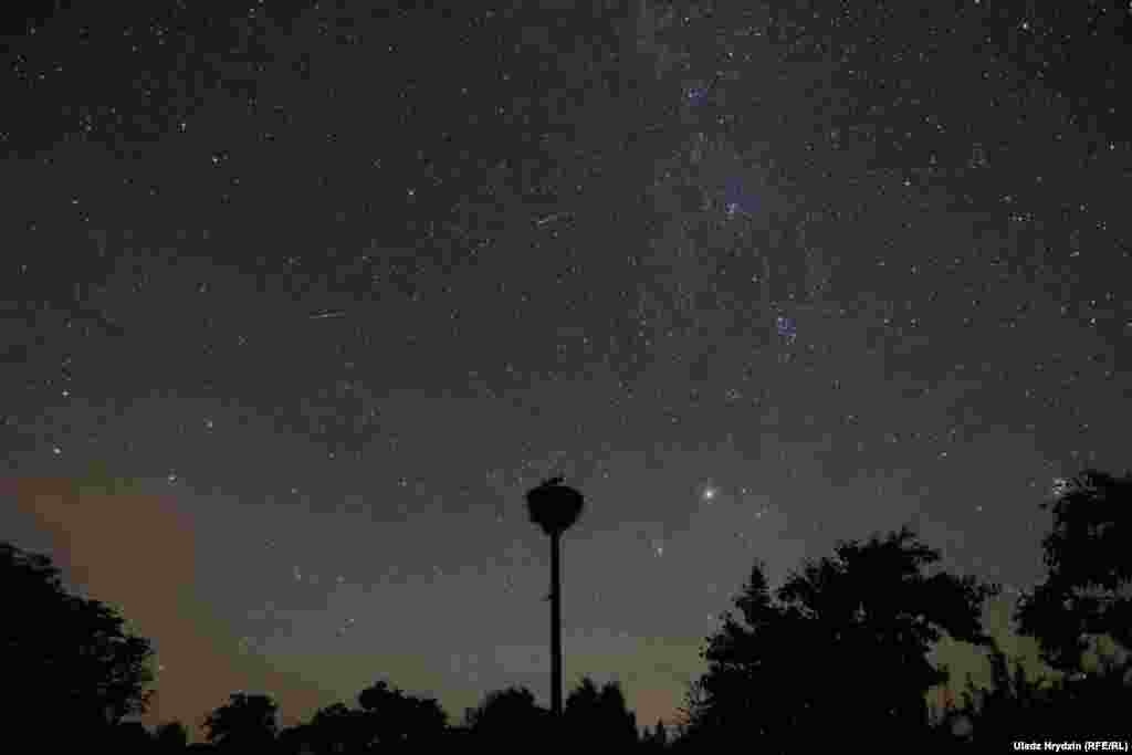 Фотакарэспандэнт Свабоды паназіраў за зарападам (дакладней, мэтэарытным дажджом) і проста прыгожым небам над старадаўнім мястэчкам Багушэвічы на Меншчыне.