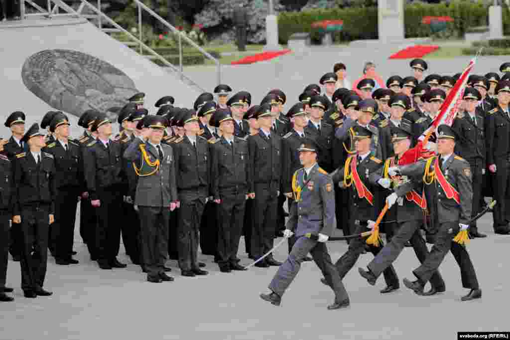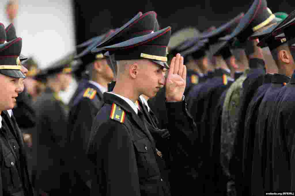 На плошчы Дзяржаўнага сьцяга прайшла афіцыйная цырымонія прысягі болей як 450 першакурсьнікаў Акадэміі МУС.